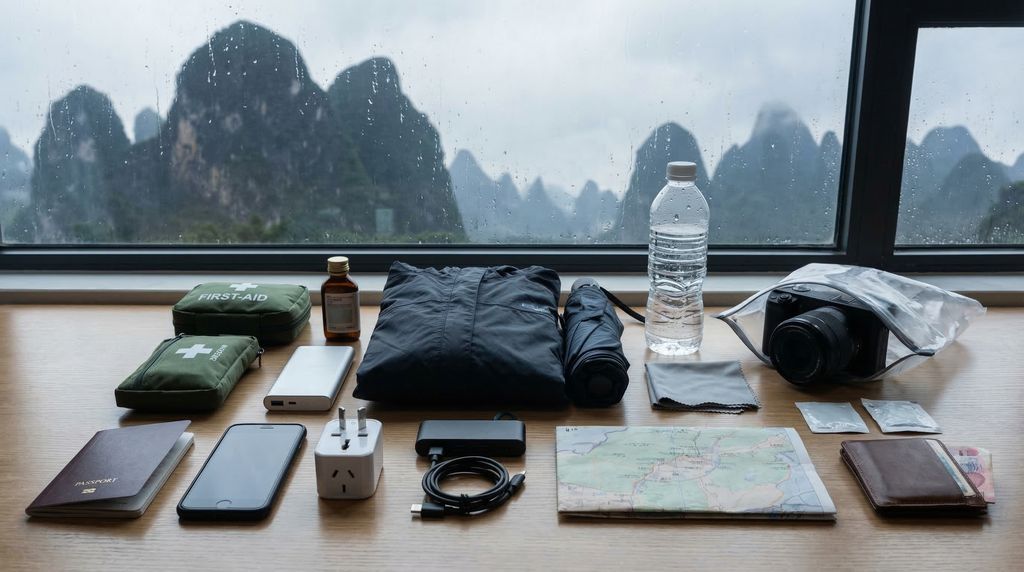 Gezondheid en veiligheid: drink flessenwater, vermijd ijsblokjes van onbekende herkomst en was of schil fruit. In warme maanden zijn muggenspray en lichte, lange kleding prettig. Guilin en Yangshuo voelen overwegend veilig aan, maar let op zakkenrollers in drukke straten en bij populaire uitzichtpunten. Wees alert op veel‑te‑mooie‑deals of ongewenste “gidsen”. Draag goede schoenen voor gladde trappen en paden na regen. Elektriciteit is 220V; stopcontacten variëren (vaak type I of multistopcontacten in hotels). Een wereldstekker met overspanningsbeveiliging en een extra oplaadkabel zorgen dat je overal uit de voeten kunt.