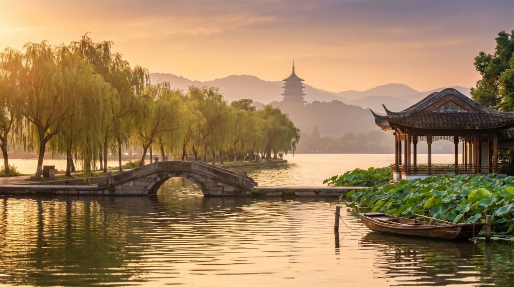 Hangzhou is het domein van het Westmeer, waar riet, wilgen en paviljoenen een poëtisch decor vormen langs de Su- en Bai-causeway. Stap over op een elektrische boot voor eilandjes en vergezichten, of volg de promenade te voet of per huurfiets. In de heuvels ten zuidwesten liggen Longjing- en Meijiawu-theedorpen; tussen theeterrassen leer je over plukken, wokken en het trekken van verse bladeren. Het China National Tea Museum geeft context aan smaken en rituelen. Met de hogesnelheidstrein arriveer je op Hangzhou East; bus, taxi of metro brengen je snel naar het meer. Trek 1 volle dag uit voor Westmeer en thee, of 1,5–2 dagen als je ook tempels en pagodes wilt aandoen. Een populaire combinatie is Hangzhou + Wuzhen: overdag natuur en thee, tegen de avond lampionnen en waterreflecties.