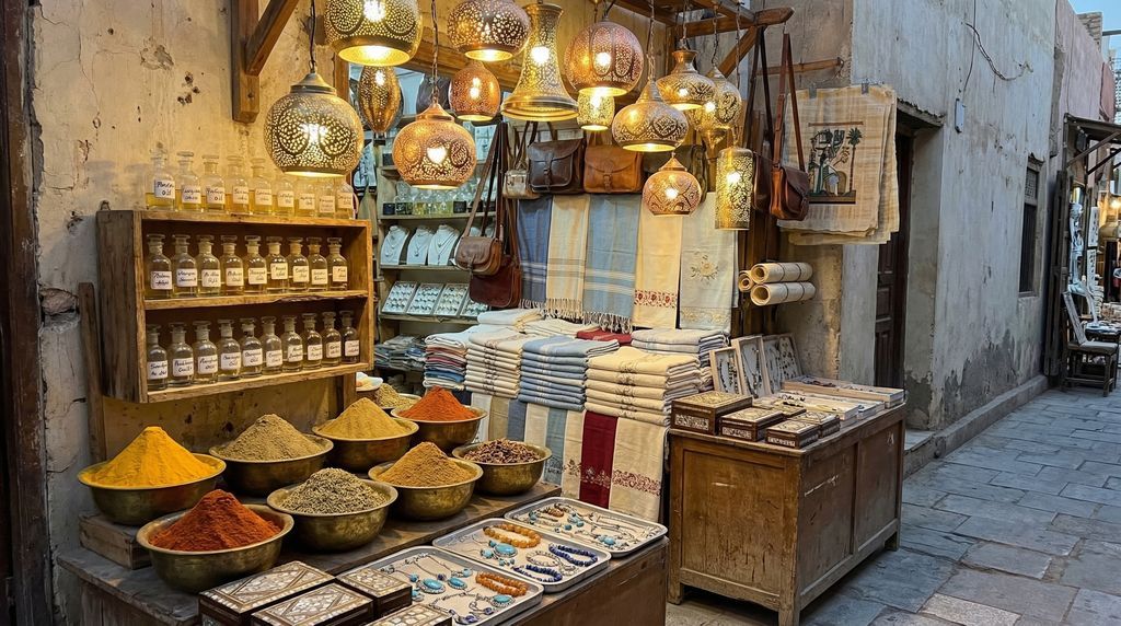 De leukste vondsten doe je waar de geur van specerijen en leer je tegemoetkomt. In El Dahar leiden smalle straatjes naar traditionele souks met kramen vol kruiden, koperwaar, aardewerk en textiel. Hier proef je het lokale ritme en hoor je het kloppen van hamers in kleine werkplaatsen. Langs Sheraton Road liggen lange rijen bazaars met felverlichte etalages vol T-shirts, sjaals en parfumflessen; het is er drukker en toeristischer, maar de keuze is groot. Bij de Marina wachten boetieks met een modernere selectie: design-souvenirs, strandmode en sieraden in een rustige, overzichtelijke setting.