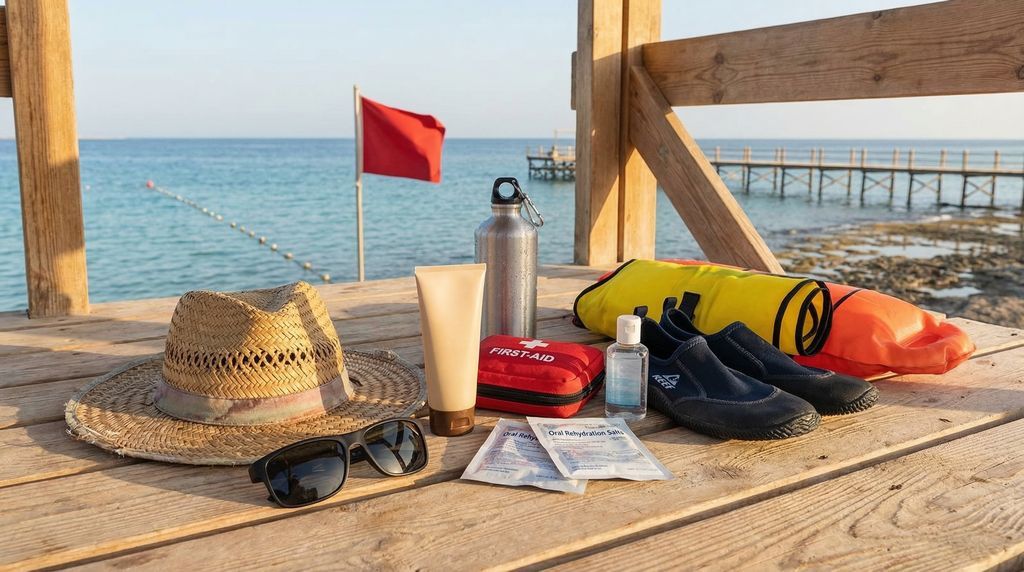 Zon en hitte vragen extra aandacht. Plan activiteiten vroeg in de ochtend of later in de middag, zoek tussen 11.00 en 15.00 uur schaduw en draag een hoed of pet, UV-shirt en zonnebril. Smeer elke twee uur SPF 30–50, vaker na zwemmen. Hydrateer ruim: 2–3 liter water per dag, aangevuld met elektrolyten bij intensieve inspanning. Gebruik flessenwater (controleer de zegel), vermijd ijs van onbekende herkomst en poets bij voorkeur met gebotteld water. Maag- en darmhygiëne: kies goed doorbakken/gegaarde gerechten, eet fruit dat je zelf schilt, let op schone werkbladen en was of desinfecteer je handen vóór het eten. Neem ORS, een middel tegen diarree en basis-EHBO mee; raadpleeg een arts bij aanhoudende koorts, bloed bij de ontlasting of tekenen van uitdroging.