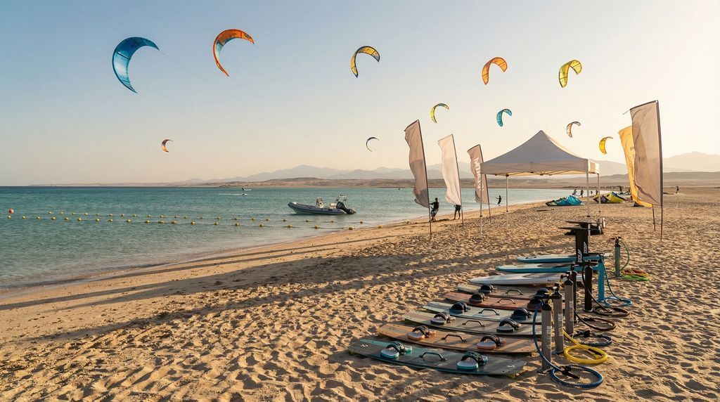 De regio Hurghada leeft op met kitesurf- en watersportmomenten wanneer de wind stabieler wordt. Vooral in het voorjaar (maart–juni) en najaar (september–november) organiseren scholen in El Gouna en Soma Bay vaak clinics, demo-days en vriendschappelijke competities voor kiten en foilen. Ook zie je geregeld SUP-races of recreatieve regatta’s op beschutte wateren. De omstandigheden zijn dan aantrekkelijk: relatief constante wind, helder water en aangename temperaturen. Aan de Marina en bij strandclubs verschijnen pop-up verhuurstands en testmateriaal; gevorderden reserveren board-, foil- of kiteverhuur vooraf, beginners boeken lessen met radiohelm en rescueboot. Bij hardere wind adviseert men kleinere kites; vraag ter plekke naar richtlijnen en windvensters.
