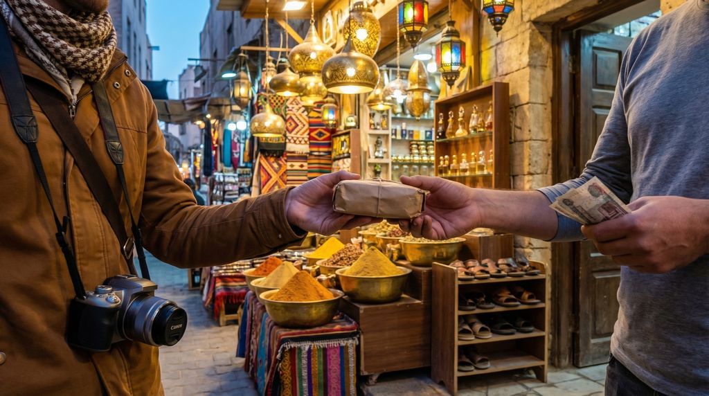 Wat te kopen? Specerijen (komijn, za’atar, saffraan- en kurkumamengsels) zijn geurig en kleurrijk; kies voor kramen met hoge omloopsnelheid en vraag om luchtdichte, ondoorzichtige zakjes. Parfumoliën variëren van authentieke bloemessen tot geuren geïnspireerd op bekende parfums; test een druppel op de huid, let op consistentie en vraag naar herkomst en ingrediënten. Egyptisch katoen herken je aan “long-staple” of “Egyptian cotton” labels, gelijkmatige weving en nette zoom; vraag naar thread count bij beddengoed en voel aan de stof. Sieraden koop je het liefst met keurmerk: zilver 925, goud met karaatstempel; vraag om weging en een bon met specificatie. Handwerk vind je in ingelegd hout, koper- en messinglampen, leren tassen en moeder-van-parel details; kleine onregelmatigheden duiden vaak op ambacht. Let bij papyrus op vezelstructuur en watermerk en wees je ervan bewust dat veel “alabaster” van gips is gemaakt.