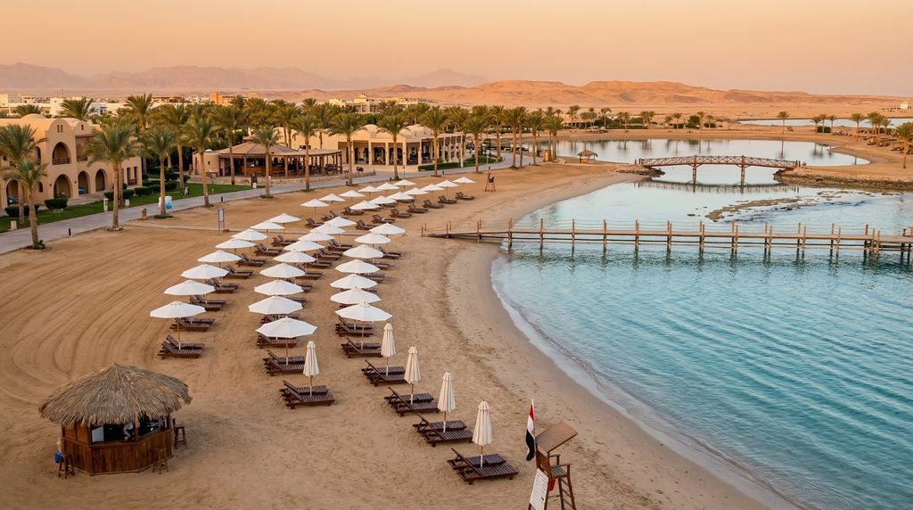 Hurghada scoort hoog op alles wat een zonvakantie zorgeloos maakt: vrijwel het hele jaar helder weer, kalm en kraakhelder zeewater en korte transfertijd vanaf de luchthaven naar het strand. De Rode Zee glinstert met uitzicht dat vaak tientallen meters reikt, ideaal voor snorkelaars en duikers, terwijl de woestijn erachter uitnodigt tot avonturen in de avondkoelte. Dankzij directe vluchten vanuit Europa en een groot aanbod aan accommodaties voelt aankomen hier moeiteloos en verleidelijk tegelijk.