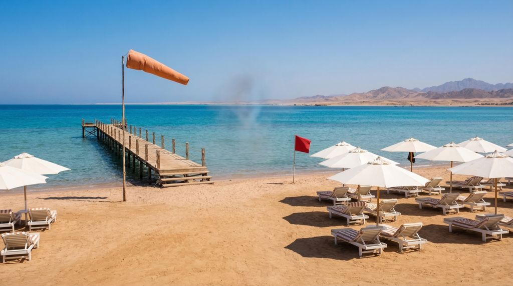 De beste reistijd ligt in maart–mei en september–november, wanneer de dagen warm en de avonden comfortabel zijn. In december–februari blijft het mild: fijn voor dagtrips naar Luxor of Caïro en voor duiken met shorty of 5 mm, al kan een windjack op de boot goed van pas komen. Juli–augustus is heet en werkt het best met een relaxed ritme: vroeg zwemmen of snorkelen, siësta in de schaduw en tegen zonsondergang weer op pad. Kitesurfers profiteren in de lente, zomer en het najaar vaak van stabiele wind, vooral in El Gouna en Soma Bay.