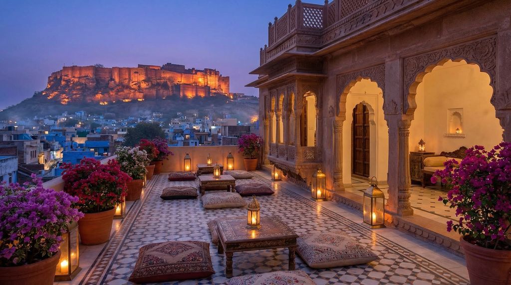 Udaipur draait om het Picholameer. Rond Lal Ghat en Hanuman Ghat liggen kleinschalige boutiquehotels en havelis met terrassen aan het water, ontbijt met uitzicht en soms eigen bootjes. Iets verderop bieden hotels aan de west- en zuidoever stillere liggingen, grotere zwembaden en uitgebreide spa’s. In Jodhpur is verblijven bij de oude stad—rond de klokkentoren (Ghanta Ghar), Toorji Ka Jhalra of in Navchokiya—ideaal voor markten, stapputten en zicht op het Mehrangarh Fort, zeker vanaf rooftops bij zonsondergang. Wie maximale luxe zoekt, kijkt naar Umaid Bhawan op de heuvel; wie midden in de sfeer wil zitten, kiest een karaktervolle haveli binnen de stadsmuren.