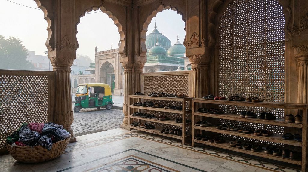 Kleding en gedrag vallen op in Rajasthan, zeker bij religieuze plaatsen. Draag bescheiden kleding die schouders en knieën bedekt; een lichte sjaal is praktisch voor tempels en dargahs. In Ajmer Sharif is een hoofdbedekking verplicht; neem een sjaal of koop ter plekke een eenvoudige cap. Schoenen gaan uit bij heiligdommen; sokken zijn handig op hete of juist koele vloeren. Let op aanvullende regels: in sommige Jaïn-tempels zijn leren artikelen (riemen, portemonnees) niet toegestaan. Spreek zacht, volg de looproute en raak rituele voorwerpen niet ongevraagd aan.