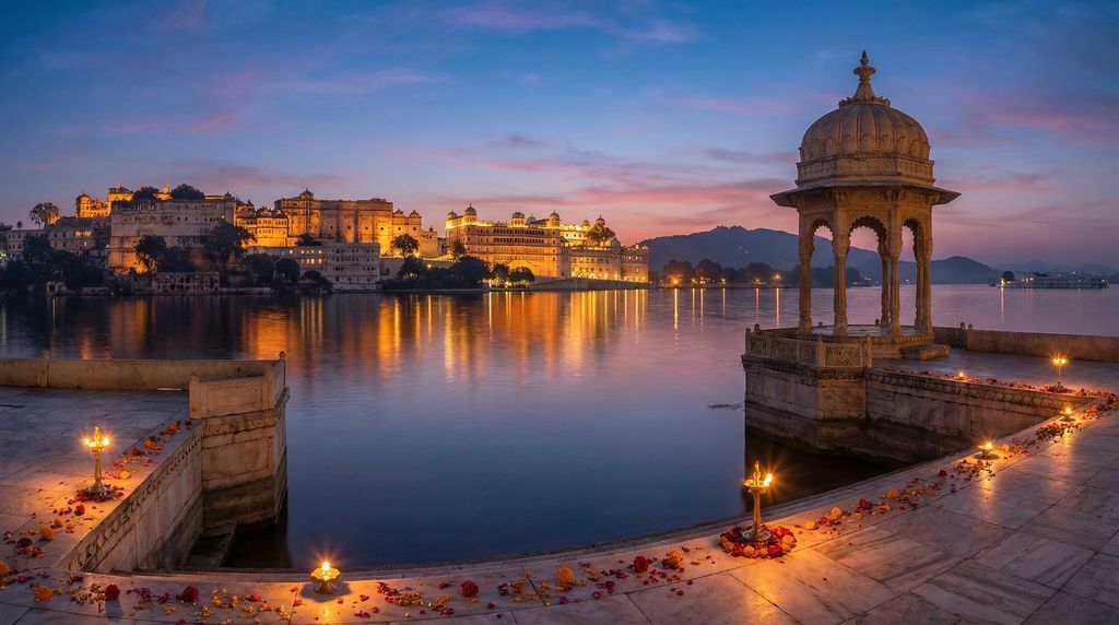 Rond Udaipur levert het Picholameer schitterende avondbeelden. Een boottocht bij zonsondergang vangt reflecties van het City Palace en het Lake Palace in koper- en pasteltonen. Aan wal zijn Ambrai Ghat en Gangaur Ghat geliefde standplaatsen; een polarisatiefilter temt schittering en een korte tele (70–200 mm) comprimeert paleizen tegen de heuvels. Kom vroeg voor kaartjes—tegen zonsondergang lopen wachtrijen op. Houd kaders vrij van menigten door laag te kadreren of net buiten de hoofdpromenade te staan. Respecteer religieuze rituelen bij de ghats: fotografeer op afstand en zonder flits.