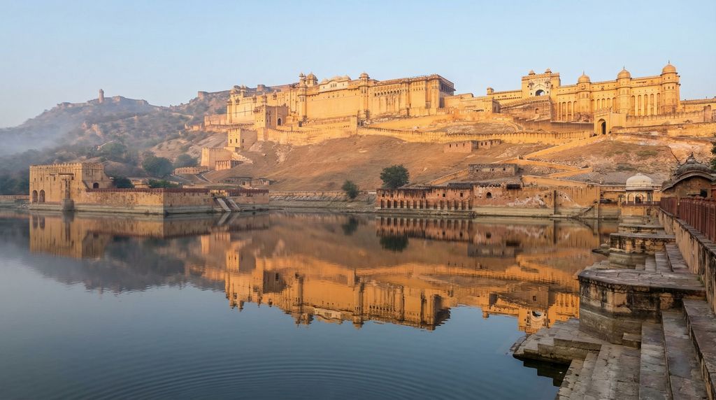 De architectuur van Rajasthan leest als een atlas van macht, wetenschap en verfijnd vakmanschap. De UNESCO-lijst van de “Heuvel Forten van Rajasthan” toont hoe Rajputheersers hun vestingen lieten samensmelten met het landschap. In Amber (bij Jaipur) zie je Rajput-bouwkunst met Mughal-invloeden: gebeeldhouwde poorten zoals de Ganesh Pol, schaduwrijke binnenhoven, jharokha-balkons en spiegel- en inlegwerk in zalen als het Sheesh Mahal. Chittorgarh ontvouwt zich als een uitgestrekt plateau met poorten, paleisruïnes en de iconische torens Vijay Stambh en Kirti Stambh, terwijl waterreservoirs de zelfredzaamheid benadrukken. Kumbhalgarh imponeert met kilometerslange muren die over de Aravalli-heuvels golven; binnen liggen tempels en paleisstructuren als schakels in een defensieve keten.