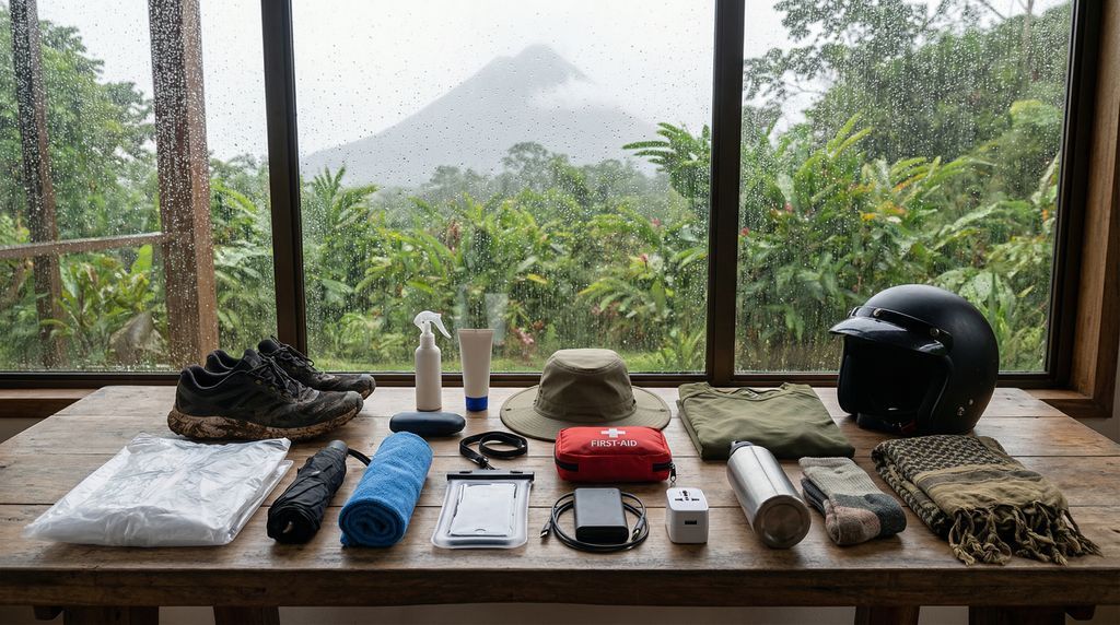 Pak licht en slim in voor Bogor’s wisselvallige weer. Een compacte poncho of lichte regenjas past altijd in je dagtas; voeg een mini‑paraplu toe voor buien op straat. Draag antislip‑schoenen met profiel (trail- of wandelsneakers) en neem eventueel sandalen met grip mee voor ondiepe doorwadingen bij watervallen. Sneldrogende kleding, een setje reserve‑sokken en een microvezelhanddoek houden je comfortabel na regen. Muggenspray (DEET of icaridine), zonnebrand, pet/hoed en een waterdichte hoes of drybag voor telefoon en documenten zijn onmisbaar. Een kleine EHBO‑kit (pleisters, desinfectie, blaarpleisters) en elektrolyten voor warme dagen zijn nuttig. Een powerbank en reisadapter (type C/F, 230 V) voorkomen lege batterijen.