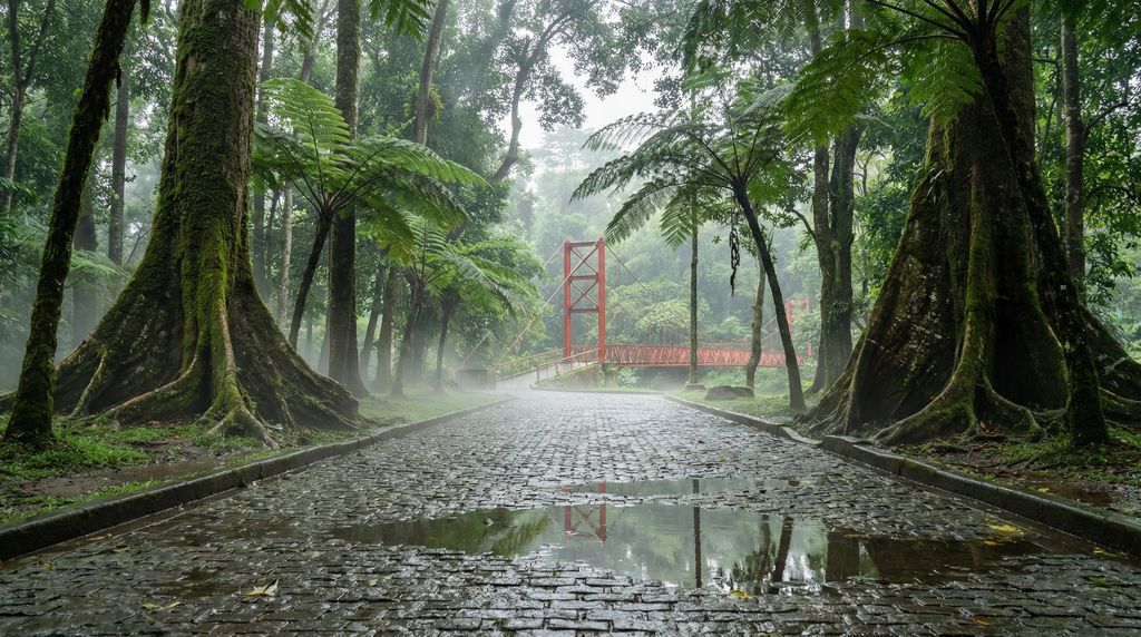 Bogor ligt in West-Java, net ten zuiden van Jakarta, en voelt meteen anders aan dan de hoofdstad: groener, koeler en omhuld door nevel die in de ochtend over de heuvels schuift. De bijnaam Kota Hujan is geen marketing, maar dagelijkse realiteit; buitjes zijn hier eerder regel dan uitzondering en ze houden het bladerdak frisgroen. Dankzij de hogere ligging en de nabijheid van vulkanen als Gunung Salak ademt de stad een bergsfeer, met schaduwrijke lanen en parken die uitnodigen tot rustig dwalen.