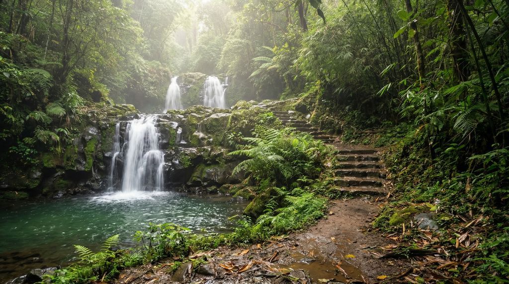 Aan de flanken van Gunung Salak, een beboste vulkaan ten zuidwesten van Bogor, slingeren koele bergbeekjes door ravijnen en valleibossen. Tussen varens en bamboe hoor je het constante geruis van watervallen die hun nevel over glibberige rotsen spreiden. Dankzij de nabijheid van Bogor zijn veel trajecten kort en haalbaar als halve‑dagtocht, met paden die variëren van geplaveide trappen tot stenige rivierbeddingen.