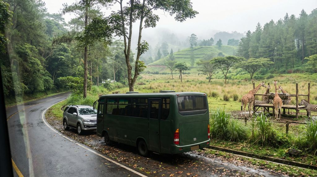 Praktisch bereik je Cisarua vanuit Bogor in circa 60–90 minuten, afhankelijk van verkeer en het “one way”-systeem in Puncak op piekdagen. De afstand is ongeveer 20–25 kilometer via Jalan Raya Puncak. Tickets koop je aan de kassa of online; online reserveren scheelt wachttijd in het weekend en bij feestdagen. Tarieven en pakketten verschillen (bijv. alleen Safari Journey, combinatietickets met attracties of Istana Panda) en kindertarieven zijn vaak op lengte gebaseerd. Piekuren zijn zaterdagen, zondagen en schoolvakanties, met langzamere doorstroming op de safariroute en langere rijen bij shows. Doordeweeks en vroeg arriveren levert de meest ontspannen ervaring op. Parkeren is ruim aanwezig; bij regen zijn paraplu’s of poncho’s handig voor de loopstukken tussen zones.