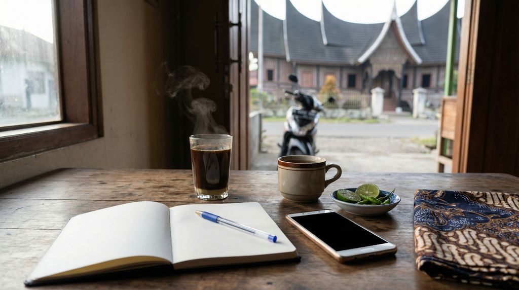 De weg vragen en je verplaatsen gaat vlot met een paar vaste formules. “Di mana halte/ferry/pelabuhan?” helpt bij vervoer, “Ke Danau Toba berapa lama?” peilt reistijd. Voor taxi of ojek: “Pasang argo?” (meter aan?) of spreek vooraf een prijs af. Handig bij afspraken: “Jam berapa?” (Hoe laat?), “Nanti” (straks), “Sekarang” (nu), “Tunggu sebentar” (wacht even). In het verkeer zijn “Pelan-pelan” (rustig aan) en “Hati-hati” (voorzichtig) nuttig. Als je iets niet begrijpt, gebruik “Bisa ulangi, pelan-pelan?” (Kunt u het herhalen, langzaam?), en vraag toestemming voor foto’s met “Boleh foto?” Een vriendelijke toon en oogcontact zorgen bijna altijd voor behulpzame reacties.