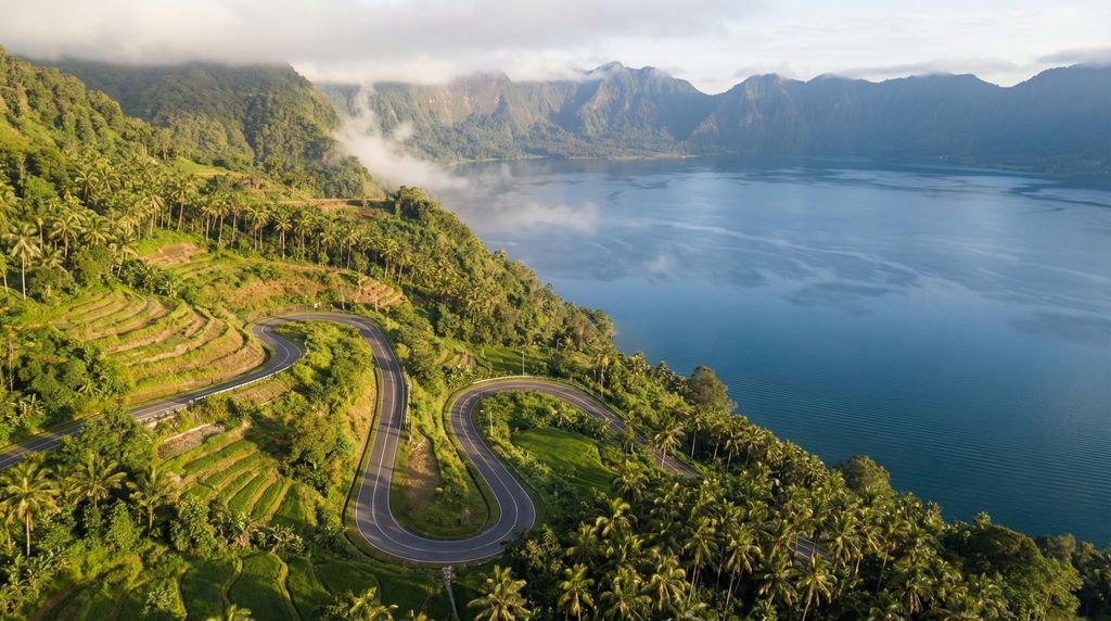 Stel je eerste ochtend voor: de lucht boven Gunung Sibayak kleurt zalmroze, stoompluimen fluisteren langs rotsen en beneden ontwaakt een oceaan van groen. Later die week zweef je boven koralen bij Pulau Weh, proef je verse sate Padang en deel je verhalen bij een glas hete kopi. Zet een pin op de kaart, kies je startpunt en laat de rest ontstaan op het ritme van wegen, water en wind.