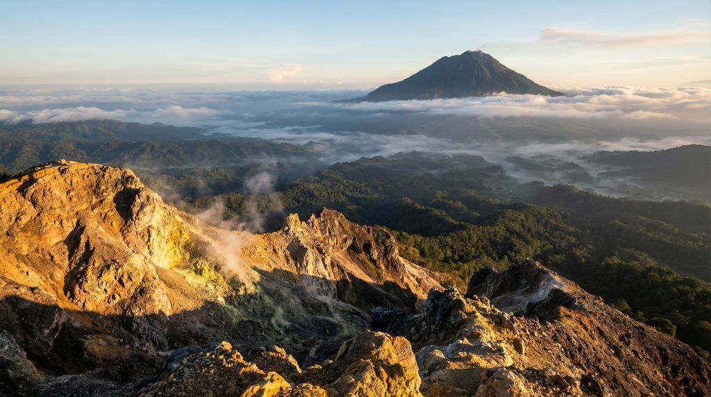 Voor vulkanische hikes biedt Berastagi’s Gunung Sibayak een ideale instap. In 2–3 uur bereik je de kraterrand via duidelijke paden, langs sissende fumarolen en zwavelgele afzettingen. Zonsopgangstochten belonen met uitzicht op de silhouet van Sinabung, terwijl de vallei baadt in goud licht; neem warme lagen en een zaklamp mee. Voor ervaren wandelaars is Gunung Kerinci (3.805 m) het hoogtepunt. Vanuit Kersik Tuo regel je permits en, indien gewenst, dragers; de klim verloopt doorgaans in 2–3 dagen met een toppoging in het donker. Het pad wisselt tussen worteltunnels en puinhellingen, de temperatuur kan rond het vriespunt liggen en de wind is onvoorspelbaar. Basisconditie, stevige schoenen en tijd voor acclimatisatie vergroten het plezier en de veiligheid.