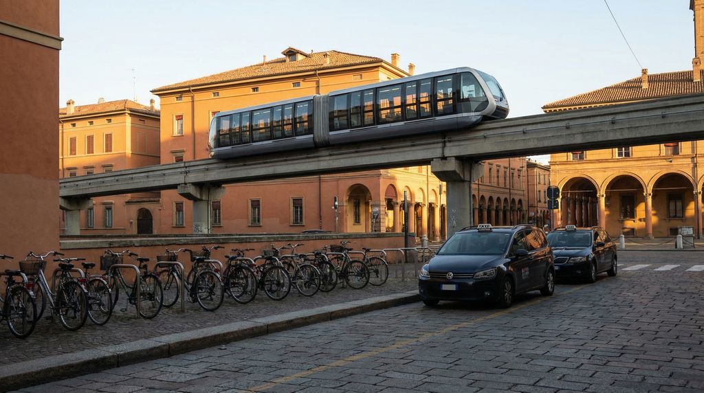 Verplaatsen in de stad gaat vlot te voet: de portici bieden schaduw en beschutting, ook bij regen. Draag comfortabele schoenen; kasseien en cotto-tegels kunnen glad zijn. Fietsen is populair en praktisch op de relatief vlakke routes binnen en net buiten de ring; gebruik verlichting in het donker en zet je fiets dubbel op slot. Voor wie geen eigen fiets heeft, bieden verhuurders en deelfietsapps korte en daghuur. Het stedelijk busnet (TPER) dekt de binnenstad en voorsteden; tickets koop je bij automaten, tabakszaken, kiosken of via app en valideer je bij instappen. Nachtdiensten zijn beperkter; voor late ritten zijn taxi’s of deelmobiliteit handig.