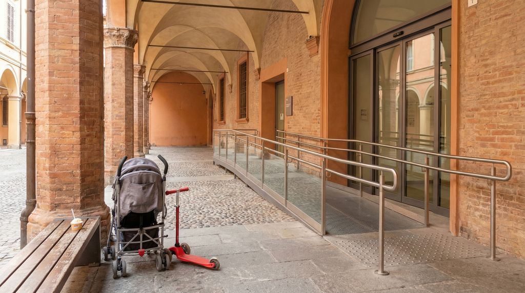 Toegankelijkheid is overwegend goed, maar niet uniform. Onder de portici loop je beschut en vaak vlak, al komen drempels, putdeksels en gladde cotto-tegels na regen voor. Een lichte kinderwagen met goede wielen of een draagzak is praktisch op kasseien. Musea hebben doorgaans liften, brede doorgangen en toegankelijke toiletten; vraag bij de kassa naar toegankelijke routes en eventuele gratis toegang voor begeleiders. Kerken hebben soms een zij-ingang met helling; schouders en knieën bedekken blijft gewenst. De Toren van Asinelli is niet geschikt voor jonge kinderen, kinderwagens of reizigers met hoogtevrees of beperkte mobiliteit: 498 smalle houten treden, nauwe doorgangen, geen lift. De Portico di San Luca is grotendeels vriendelijk, maar bevat trappen en hellingen; plan pauzes en neem water mee. Bussen zijn meestal laagvloers met oprijplaten; valideer tickets bij instappen en gebruik prioriteitsplaatsen met kinderwagen of rolstoel. Controleer voor vertrek de pagina’s van Bologna Welcome voor actuele toegankelijkheidsinformatie en eventuele werkzaamheden onder de bogen.