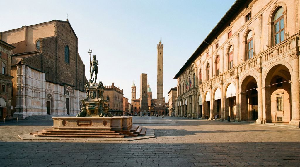 Piazza Maggiore vormt het kloppende hart van Bologna, een grootstedelijke huiskamer omringd door monumenten die de geschiedenis van de stad vertellen. De Basilica di San Petronio domineert het plein met haar imposante, onvoltooide gevel: de onderste helft in marmer, de bovenste in ruw baksteen. Binnen vind je een reeks kapellen en de beroemde meridiaanlijn van Cassini (17e eeuw), de langste indoor-zonnewijzer van Europa, die het zonlicht precies door de kerk laat snijden op het middaguur. Wie hoogte wil pakken, let op het soms geopende panoramaterras op de basiliek; openingstijden wisselen en tickets zijn ter plekke of via Bologna Welcome verkrijgbaar.