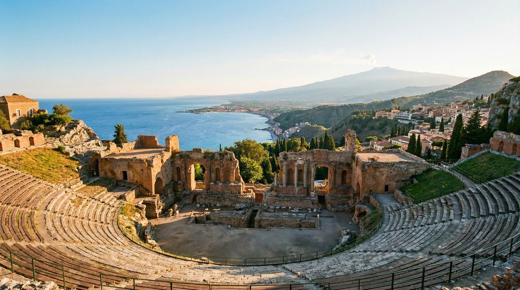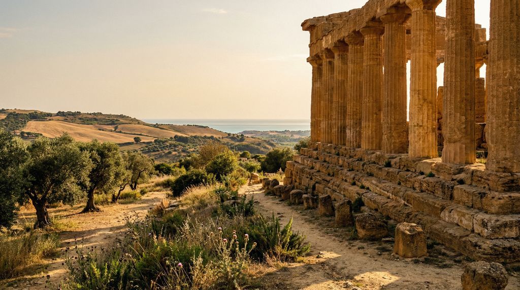 In de Vallei van de Tempels bij Agrigento rijzen monumentale Dorische silhouetten op uit een open, zonovergoten landschap. Tussen amandelbomen en stoffige paden liggen perfect bewaarde resten als de Tempel van Concordia, die bij schemer goud afsteekt tegen de heuvels. Aan de oostkust biedt het Teatro Greco in Taormina een decor dat niet te regisseren valt: antieke stenen kijken uit over een azuurblauwe baai, met in de verte de Etna die soms een ranke rookpluim de lucht in stuurt. Verder zuidelijk ontvouwt Syracuse zich als een geschiedenisboek; op Ortigia staan de Tempel van Apollo en de Duomo op loopafstand van het sprankelende waterfront, waar fonteinen en kades elkaar afwisselen.