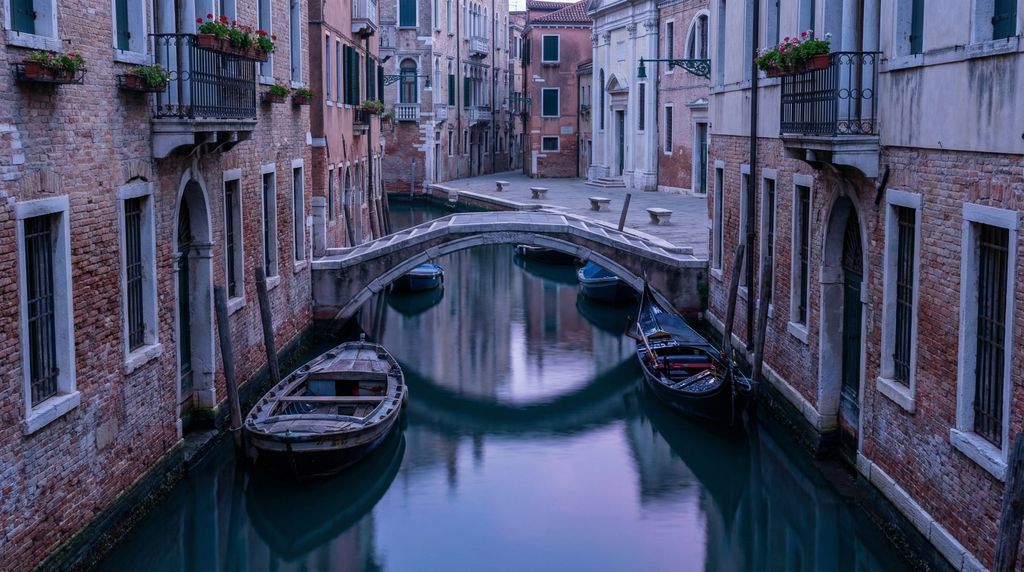 Zoek ook de minder vanzelfsprekende doorsteken op. Het drieboogsilhouet van de Ponte dei Tre Archi, helemaal aan de noordrand van Cannaregio, schept fraaie lijnen over het water. In Castello verbergt San Zaccaria een stralend altaarstuk van Bellini, op loopafstand van drukte maar in een veel stillere setting. In Dorsoduro levert de korte omweg via Campo San Vio en de afgelegen ruggetjes rond de Accademia bruggen en uitzichten zonder mensenmassa’s op. Fototip: vroeg in de ochtend of tijdens het blauwe uur worden stegen spiegels en komt de fijne textuur van baksteen, Istrische steen en water volledig tot zijn recht; een statief is zelden nodig als je leunt tegen een kademuur of brugleuning.