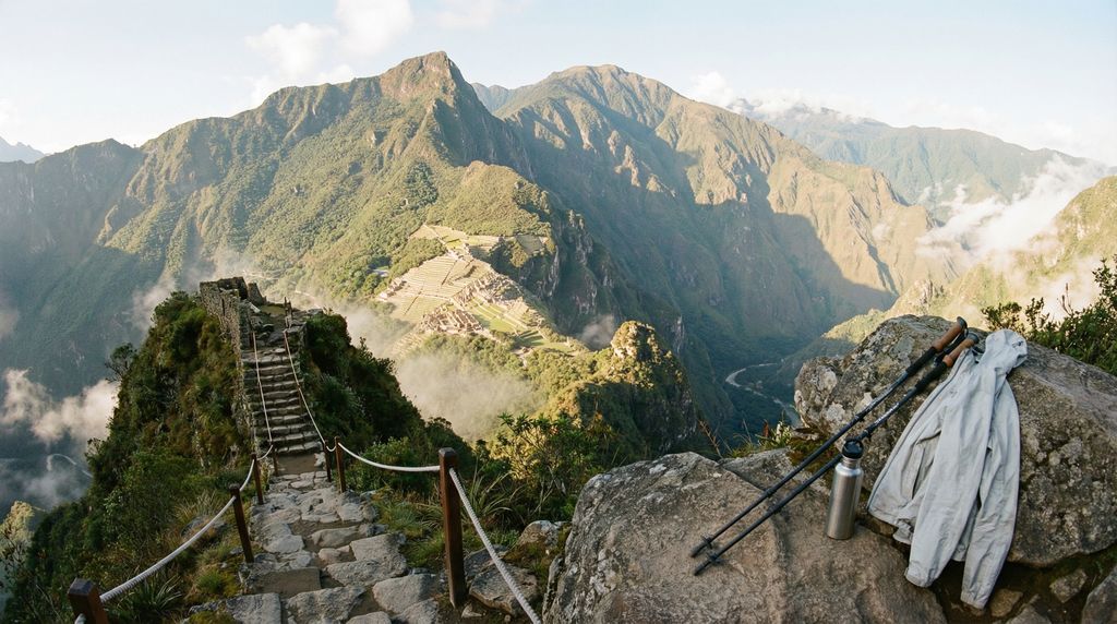 Fysieke conditie en uitrusting maken een groot verschil. Draag ingelopen wandelschoenen met goed profiel en neem water, snacks en laagjeskleding mee. De paden kunnen nat en glad zijn, zeker in het regenseizoen; trekkingstokken zijn soms toegestaan mits voorzien van rubberen doppen. Wie gevoelig is voor hoogtevrees, kiest beter voor Huchuy Picchu of de langere maar minder blootgestelde Montaña Machu Picchu. Houd een rustig tempo, pauzeer op brede segmenten en keer om als vermoeidheid of weersverandering dat verstandig maakt. Volg markeringen en aanwijzingen van het personeel; buiten de afgebakende paden gaan is verboden.
