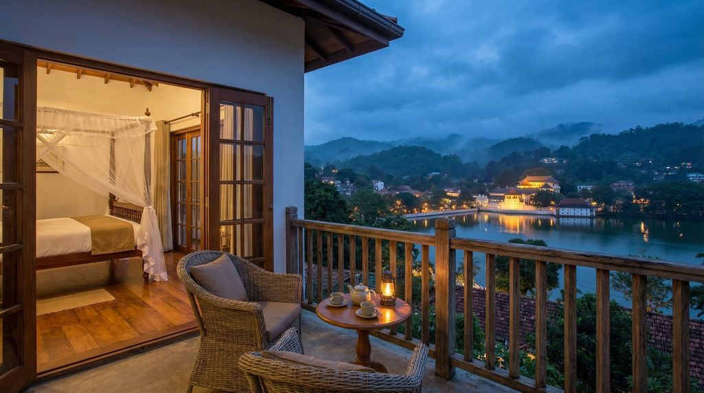 Handige voorzieningen om op te letten: airco of plafondventilatoren (het hooglandklimaat is mild, maar kamers kunnen klam aanvoelen), warme douche met goede waterdruk, muskietennetten of horren, balkon of terras, waterkoker en kluisje. Betrouwbare wifi en een back-upgenerator zijn pluspunten, net als parkeerruimte, kinderbedjes, liften (zeldzaam in heuvelhotels) of juist kamers op begane grond voor minder trappen. Een vroeg ontbijt of “breakfast box” is nuttig voor treinreizen, hikes of vroege tempelbezoeken. Transfers vanaf Peradeniya Junction of het busstation besparen gedoe. Tijdens de Esala Perahera schieten prijzen omhoog, gelden soms minimumverblijven en raken kamers met balkon aan de route vroegtijdig vol; reserveer maanden op voorhand en neem oordopjes mee, want festiviteitsgeluid draagt ver.