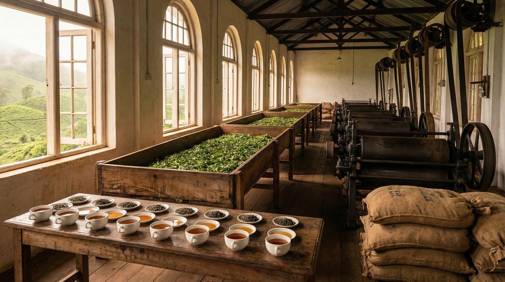 Mistige heuvelruggen en glanzende theebladeren vormen het decor waarin Kandy uitgroeide tot een van de bakermatten van Ceylon-thee. Op de hellingen rondom de stad ontdek je een wereld waarin plantkunde, ambacht en koloniale geschiedenis samenkomen. Thee is hier meer dan een warm drankje: het is een ritme van plukken in de ochtend, verwerken in geurende fabriekshallen en proeven met aandacht voor kleur, aroma en mondgevoel.