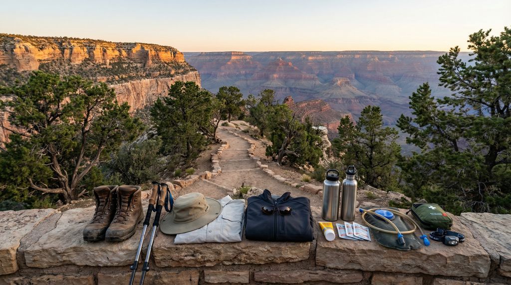 Voldoende hydratatie en bescherming tegen de elementen zijn essentieel. Reken bij warme omstandigheden op 3–4 liter water per persoon voor een serieuze daghike beneden de rand, en voeg elektrolyten toe (tabletten/poeders) om zout- en mineralenverlies te compenseren. Drink regelmatig, eet zoute snacks en luister naar dorst- en vermoeidheidssignalen. Draag zonbescherming: brede hoed of pet, UV‑zonnebrand, zonnebril en lichte, langemouwige kleding. Kies laagjes, want ochtenden en avonden kunnen koel zijn, zeker op de randen, terwijl het beneden snikheet wordt. Stevige wandelschoenen met grip en ingelopen zolen voorkomen uitglijden en blaren; wandelstokken helpen bij steile secties en bij afdalen.