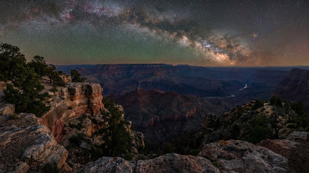 De nacht is een attractie op zich: als International Dark Sky Park biedt de Grand Canyon uitzonderlijk goede omstandigheden voor sterrenkijken. Plan bij voorkeur op maanloze nachten, neem warme kleding mee (zelfs in de zomer kan het fris zijn op de rand) en gebruik een rode zaklamp om nachtzicht te behouden. Dicht bij de rand zijn Yavapai Point en Desert View uitstekende plekken; verder weg van verlichting leveren ook open stukken van de Rim Trail donkere hemels op. Voor zonsopkomst zijn Yaki Point en Mather Point favoriet vanwege het vrije zicht naar het oosten, terwijl Hopi Point, Mohave Point en Pima Point beroemd zijn om vurige zonsondergangen. Aan de North Rim geven Cape Royal en Point Imperial vaak weidse, goudkleurige avondscènes, en aan de West Rim biedt Guano Point 360-graden lichtshows.