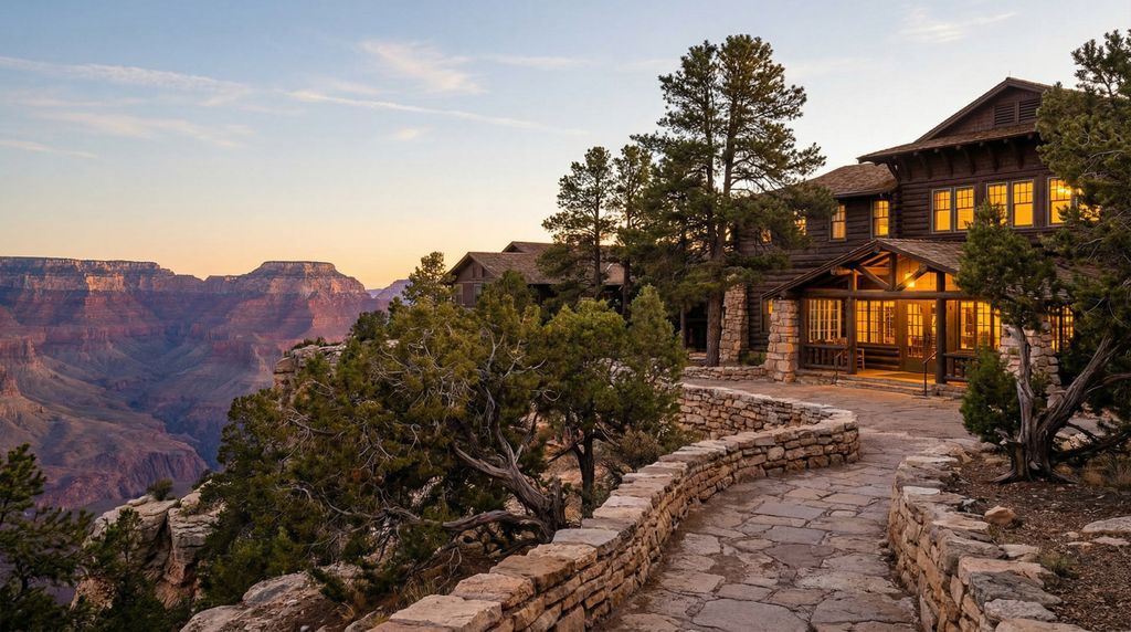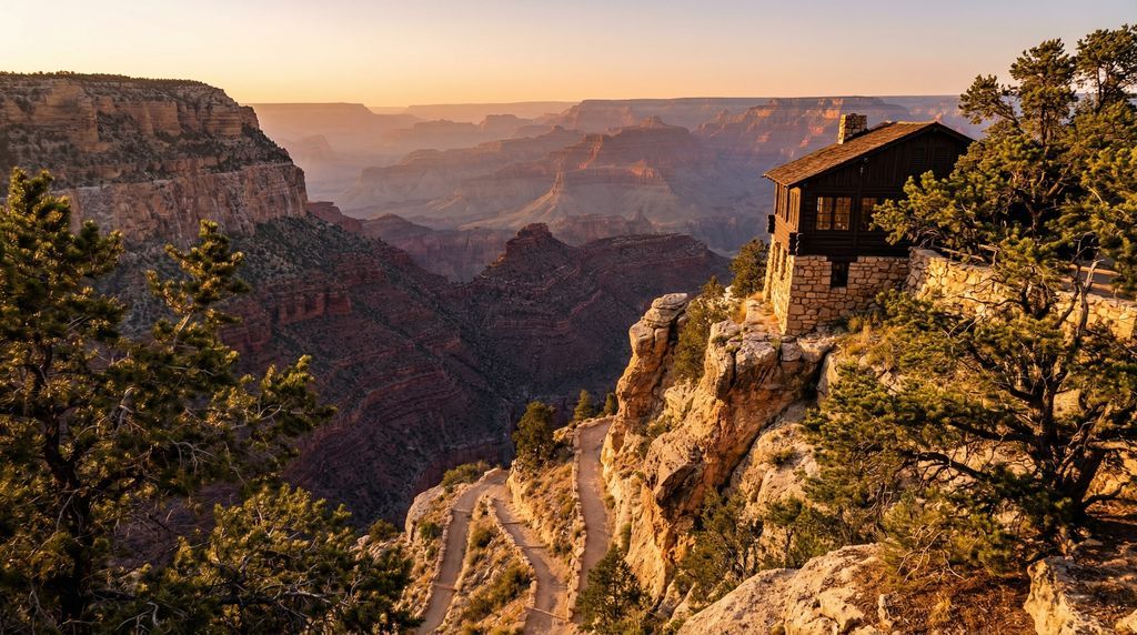 Historische architectuur verbindt interpretatie met uitzicht. De Desert View Watchtower, ontworpen door Mary Colter in 1932, refereert aan bouwtradities uit het zuidwesten en biedt vanaf meerdere niveaus een wijde blik op de binnenstromende Colorado River. Binnen zijn muurschilderingen te zien van de Hopi-kunstenaar Fred Kabotie, die motieven en verhalen verbeeldt. Aan de rand van de Bright Angel Trail staat Kolb Studio, het voormalige woon- en werkhuis van de broers Kolb, pioniers in fotografie en film van muletochten en canyonexpedities. Tegenwoordig huisvest het gebouw wisselende tentoonstellingen en een winkel, waarbij historische beelden en moderne kunst naast elkaar een rijk beeld schetsen van de voortdurende dialoog tussen mens en kloof.